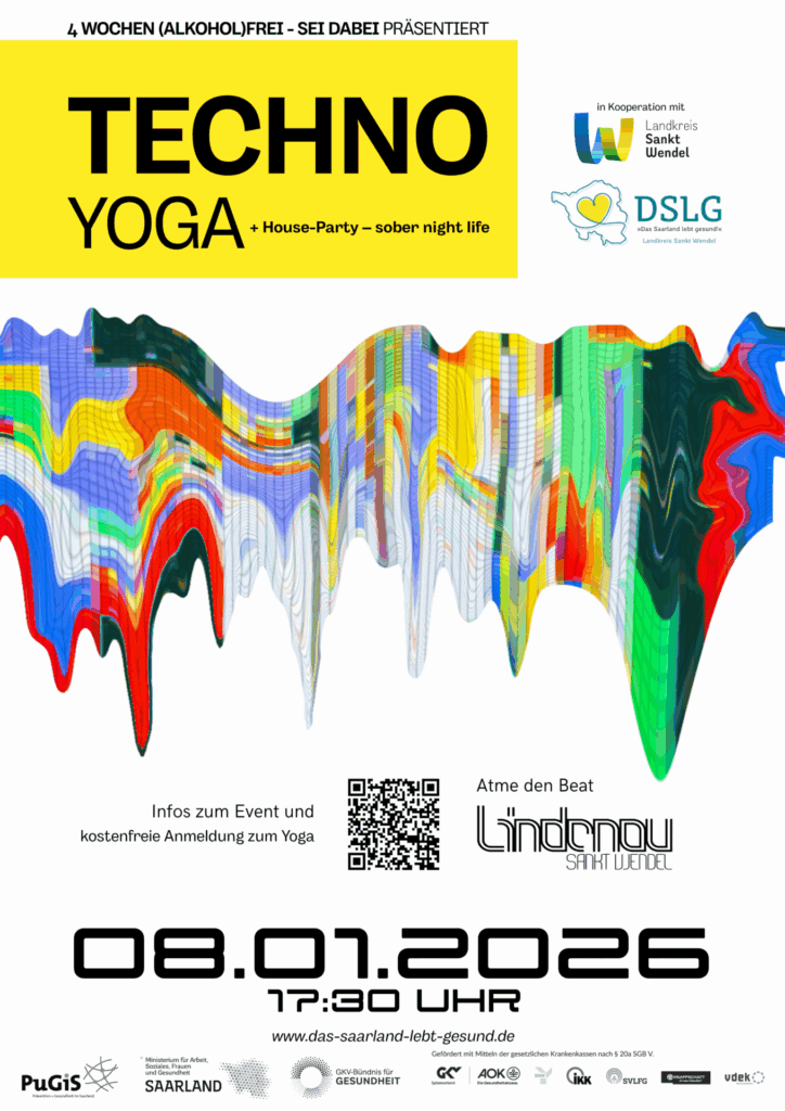 Eröffnungsevent der Kampagne „4 Wochen (alkohol)frei – sei dabei“ im Landkreis Sankt Wendel. Der Landkreis Sankt Wandel präsentiert im Januar die „4 Wochen (alkohol)frei – sei dabei“-Kampagne. Startschuss ist ein Eventhighlight in der Lindenau St. Wendel. Dabei starten wir mit Techno-Yoga in den Abend, anschließend steigt eine pulsierende House-Party, ganz im Sinne des „sober night life“ […]