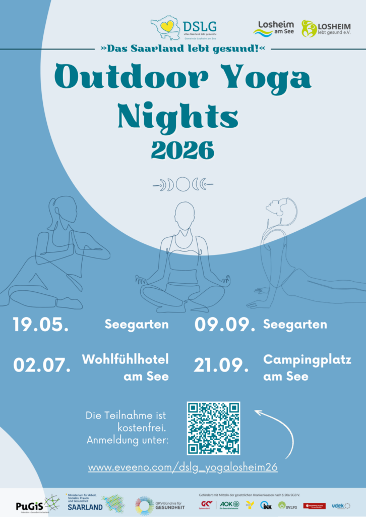 Dieses Jahr finden in Losheim am See erneut die DSLG-Outdoor-Yoga-Night statt. Tauchen Sie in die Welt der Entspannung ein. Unter professioneller Anleitung stärken wir unseren Geist und unseren Körper beim Fackelyoga unter freiem Himmel. Die Veranstaltung wird von der Gemeinde Losheim am See, dem Projektteam von »Das Saarland lebt gesund!« (DSLG) sowie dem Verein „Losheim lebt […]