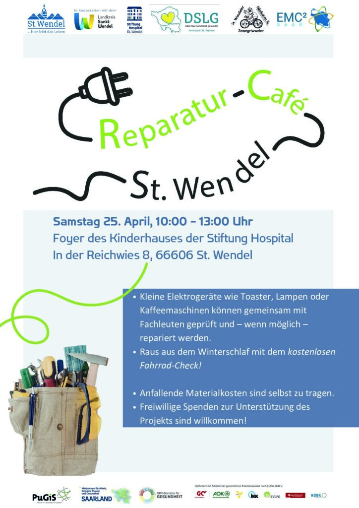 In St. Wendel öffnet am Samstag, 25. April von 10 bis 13 Uhr zum ersten Mal ein Reparaturcafé seine Türen. Die Veranstaltung findet im Foyer des Kinderhauses der Stiftung Hospital in der Straße „In der Reichwies“ statt. Im Reparaturcafé können kleine Elektrogeräte wie Toaster, Lampen oder Kaffeemaschinen gemeinsam mit Fachleuten überprüft und – wenn möglich […]