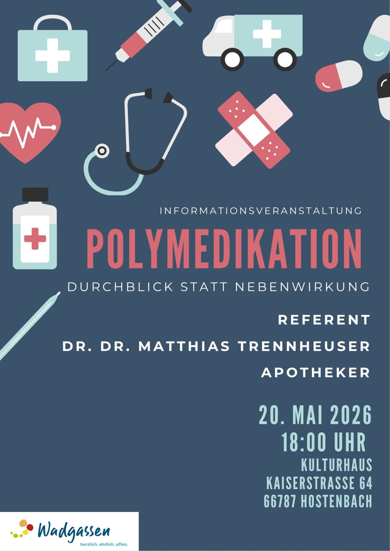 Bei der Informationsveranstaltung gibt Dr. Dr. Matthias Trennheuser praxisnahe Einblicke in den sicheren Umgang mit mehreren Arzneimitteln. Er erläutert, wie Wechselwirkungen entstehen, worauf bei der Einnahme geachtet werden sollte und wie Patient:innen aktiv zur eigenen Sicherheit beitragen können. Zudem werden Strategien vorgestellt, um den Überblick über die eigene Medikation zu behalten und Risiken zu minimieren.
